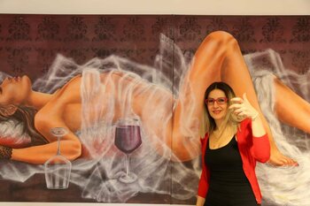 Una donna che vive il sogno e aspetta Vediamo due bicchieri di vino, uno è pieno per lei (espressione della sua assoluta disponibilità ad accettare l'altro), e l'altro è capovolto e vuoto, in attesa che qualcuno lo riempia questo bicchiere e condividere la sua vita nella sua gioia e dolore. Contiene un'espressione di vuoto emotivo e la ricerca dell'amore.