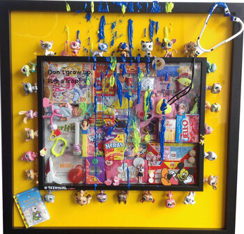 Negozi di animali, nel mondo della pop art. In quest'opera, ho cercato di catturare l'essenza gioiosa e nostalgica dell'infanzia attraverso un'esplosione di colori vivaci e oggetti iconici della cultura pop e vintage. Utilizzando acrilici, collage e vari oggetti, questo dipinto è un omaggio all'innocenza e all'immaginazione, racchiudendo il messaggio che crescere può essere una trappola, invitandoci a preservare il nostro bambino interiore. Ogni… elemento, attentamente integrato, evoca ricordi gioiosi e incoraggia un dialogo interiore sul valore della giovinezza e della fantasia nella nostra vita adulta.
