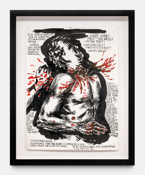Raymond Pettibon, figura unica e influente nella scena artistica contemporanea, è rinomato per la sua distintiva fusione di testo e immagine. Nato come Raymond Ginn nel 1957 a Tucson, in Arizona, e cresciuto a Hermosa Beach, in California, il viaggio di Pettibon nel mondo dell'arte è strettamente legato alla scena punk rock della fine degli anni '70 e dell'inizio degli anni '80. La sua carriera, iniziata con la creazione di copertine di album e volantini di concerti per la band punk di suo fratello, i Black Flag, si è evoluta in un profondo commento sulla cultura americana.