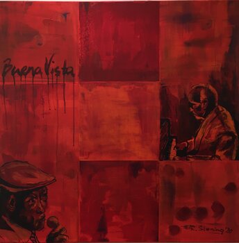Il colore rosso è la base di questo dipinto a colori acrilici. Ciascuno di questi nove quadrati in un grande quadrato è isolato e tuttavia forma un'unità attraverso i singoli toni rossi e i loro disegni. Il rosso, il colore che rappresenta il fuoco, l'energia, il calore e la passione, mi ha ispirato a collegarlo con gli appassionati musicisti del “Buena Vista Social Club”, il pianista Ruben González e il cantante Ibrahim Ferrer e la loro musica.… Questo dipinto emana un'atmosfera vibrante e stimolante che aggiunge profondità e calore accattivanti a qualsiasi stanza in cui è appeso.