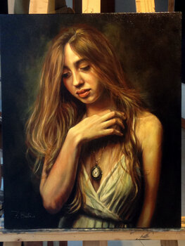 Quest'opera pronta da appendere è dipinta con colori ad olio professionali… su tela, tesa su legno di 4 cm di spessore. Anche i suoi lati sono dipinti.