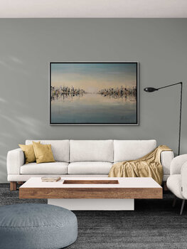 In quest'opera ho esplorato il dualismo tra chiarezza e mistero, giocando con morbide armonie e contrasti enigmatici. Le pennellate a olio astratte ed espressionistiche catturano un paesaggio che appare al tempo stesso immersivo e distante, invitando l'osservatore a un'introspezione poetica. Ogni pennellata è un invito a scoprire le sottili sfumature e la profondità emotiva, infondendo un'atmosfera di riflessione e serenità in ogni spazio. Quest'opera… è molto luminosa, realizzata a olio e spatola.