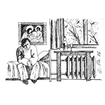 L'ispirazione è stata la mia illustrazione per la poesia del mio amico Martin Kobiela "Sono stanco, Dio".