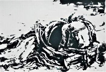 Firmato a mano dall'artista, firmato, datato, intitolato e iscritto a matita nel margine sotto l'immagine: P/P Out to Sea Rick Amor 91.