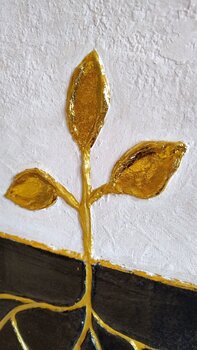 In quest'opera, ho raffigurato il potere silenzioso della crescita utilizzando la pittura acrilica dorata per le radici e la foglia d'oro per le foglie, per enfatizzarne il significato. Il simbolismo minimalista dimostra quanto la forza e la calma profondamente nascoste ci nutrano. Trasmette un'energia calmante, perfetta per portare ispirazione ed equilibrio in qualsiasi spazio.