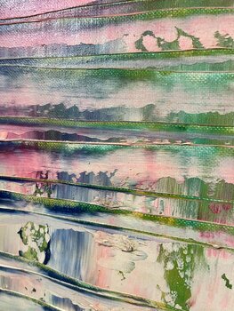 In quest'opera, ho giocato con colori a olio intensi e texture dinamiche per catturare la vita e il movimento. Le linee orizzontali aggiungono energia, mentre le tonalità vibranti esprimono emozioni come gioia e libertà. È un'esplosione di dinamismo astratto che riempie ogni spazio di energia vibrante e vibrazioni positive.