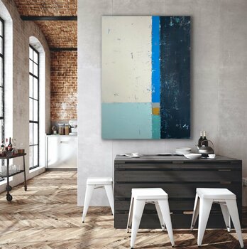 Pezzo strutturato con molti strati di acrilico applicati e rimossi in una varietà di tecniche da una tela pesante da 16 once. Questo pezzo arriva in un rotolo, in cui il cliente può essere allungato da un negozio di cornici locale o organizzato da Singulart prima della consegna. L'immagine mostrata è un'area di 66x48n. La tela si estende ben oltre 3 pollici su ciascun lato dalla misura elencata, con un totale di 72x54 pollici di materiale. Dandogli… un sacco di materiale per passare sopra una barra della barella profonda 2 pollici. Sembra fantastico con qualsiasi orientamento, quindi il pezzo è firmato sul lato, ma può essere firmato sul davanti se il collezionista lo desidera.
