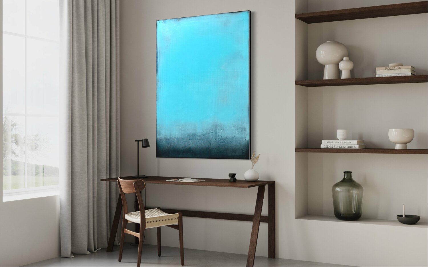 Strati di spessi acrilici traslucidi su una tela da 36x48 pollici. Arriva pronto per essere appeso, teso su barre profonde 1,5 pollici e firmato sul lato.