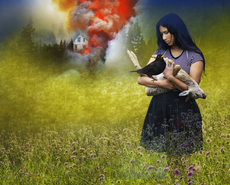 In quest'opera, ho catturato un momento toccante di fragile speranza in mezzo al caos. I colori vivaci e gli strati digitali contrastano la pace del campo con la distruzione ardente alle sue spalle, simboleggiando resilienza e tristezza intrecciate. Quest'opera d'arte trasmette una profonda energia emotiva, invitando a riflettere sulla convivenza di forza e vulnerabilità, rendendo il vostro spazio al tempo stesso potente e contemplativo.