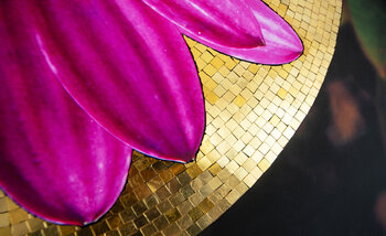 Mi sono ispirato non solo all'arte religiosa italiana del XIV secolo nella sua raffigurazione di santi aureolati e al mosaico bizantino ravennate (mausoleo di Galla Placidia). Sempre fedele alla mia domanda sul nostro rapporto con la natura, mi sono chiesto perché dovremmo accontentarci di incoronare uomini e donne per le loro buone azioni, quando la Natura, dalla quale siamo altamente interdipendenti, è la condizione della nostra vita e della nostra… sopravvivenza. Sulla base di questa osservazione, ho deciso di creare un'aureola, per santificare la vita vegetale. Ho scelto questo fiore modesto che cresce nei prati e nei giardini. Per trasmettere la grandiosità di questa piccola pianta, l'ho fotografata da vicino. Attraverso l'utilizzo del mosaico realizzato con tessere di vetro veneziano in cui sono inserite foglie d'oro 24 carati inscritte, un mezzo antichissimo nella storia dell'arte, desidero inserire questo soggetto in questa lunga storia dell'arte.