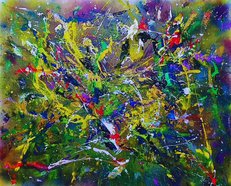 In questo lavoro mi addentro nelle profondità del mistero sacro. I blu profondi e i neri vellutati evocano l'ignoto, l'invisibile. Lampi di ocra e bianco emergono lentamente, come una rivelazione graduale. È un invito a contemplare, a lasciarsi avvolgere dal silenzio del divino.