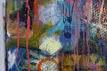 La tecnica dell'acrilico fornisce… una base solida, con tratti decisi e pigmenti vivaci che si stagliano con forza sulla tela, mentre l'uso dello spray aggiunge una dimensione di spontaneità e fluidità, con sfumature e sovrapposizioni che creano profondità e movimento. L'effetto finale è quello di un universo astratto che si espande oltre i confini della tela, invitando l'osservatore a immergersi in una contemplazione intima e personale.