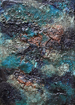 In this visceral tapestry of raw emotion and textured allure, I've melded acrylics, graphite, and chalk to birth a primal symphony. Every stroke and pigment whispers ancient tales, channeling abstract and expressionistic fervor with a symbolic heart. Its presence is a pulsing core of energy, meant to evoke an elemental resonance in the beholder’s space. In questa galleria, ogni pezzo funge da testimonianza della libertà espressiva dell' artista,… che, liberandosi dei vincoli dei materiali tradizionali, ci invita a riflettere sulla natura stessa dell'arte e sulla sua capacità di evocare emozioni profonde e di stimolare la riflessione. La diversità dei materiali utilizzati non solo arricchisce la texture visiva delle opere ma apre anche un dialogo sulla sostenibilità e sulle possibilità infinite dell'arte contemporanea.