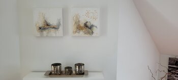 Sabine Leise è un'artista esperta che crea un caleidoscopio di strutture piene, tecniche miste e collage, fino all'applicazione finemente dosata della vernice.