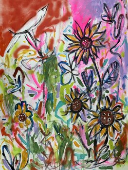 In questa vibrante fusione di acrilici, vernice spray e inchiostro, ho danzato con pennelli e colori per evocare lo spirito selvaggio e incontaminato della natura. I tratti semi-astratti sulla tela celebrano il caos gioioso e la bellezza effimera di un campo fiorito, invitando gli spettatori a trovare la propria pace tra petali e foglie vorticosi. Questo pezzo pulsa di vita e cospargerà un tocco di fantasia e meraviglia su qualsiasi parete che adorna.