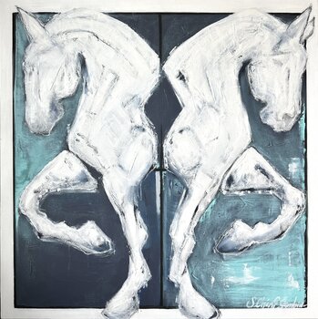 In quest'opera, ho riversato emozioni pure e crude nelle forme audaci e materiche dei due cavalli schiena contro schiena. Utilizzando gli acrilici, ho cercato di catturare forza e vulnerabilità simultaneamente, riflettendo come forze opposte possano coesistere. Questo dipinto irradia un'energia potente e introspettiva che conferirà una presenza dinamica e stimolante a qualsiasi spazio. Parla di resilienza, equilibrio e bellezza del contrasto.