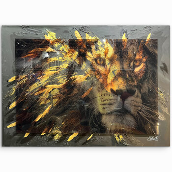 In quest'opera, ho catturato la potenza e la maestosità del leone in una composizione semi-astratta. Utilizzando acrilico, collage ed epossidica, ho creato una dinamica che cattura l'osservatore e rende tangibile l'energia ardente dell'animale. Questo dipinto infonde coraggio e forza in ogni ambiente: una vibrante affermazione di passione e vitalità.