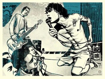Shepard Fairey è noto anche per la serie "Obey", che cattura l'attenzione con il suo stile incisivo e il suo messaggio impegnato. Attivo da oltre tre decenni, Fairey ha diversificato il suo lavoro, spaziando dall'arte di strada al design grafico. Nel 2003 ha fondato Studio Number One, un'agenzia di design che ha lavorato a diversi progetti, dalle copertine di album alle campagne politiche.