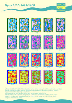 La signora Silke Wolff, l'iconica artista post-pop art accademica, digitale, medianica e surreale, svela un universo generale, segreto e soprannaturale con le sue grafiche originali.