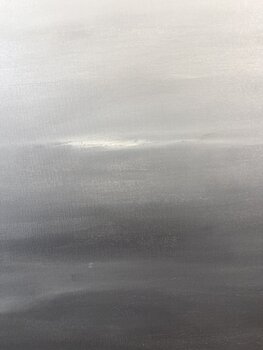 Davanti a questa mia opera sento di aver voluto catturare un momento di sospensione, come se tutto fosse immerso in un respiro profondo e lento. Ho scelto una gamma di grigi e tonalità soffuse perché volevo che la luce e l’ombra si fondessero, senza confini netti, in un movimento quasi impercettibile. È una visione che nasce più da uno stato d’animo che da un luogo preciso: una distesa indefinita, forse mare, forse cielo, dove tutto si dissolve e… si ricompone in silenzio.