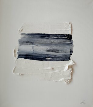 Fedele al motto "Niente è completamente bianco o nero", questo lavoro si riferisce all'essenziale: "Essere"! L'arte al centro e lo spazio bianco come spazio libero per "respirare", per pensare, per l'immaginazione - e come sappiamo, non ci sono limiti a questo. Il movimento intuitivo e la pennellata durante l'applicazione si traducono in un emozionante mix di bianco e nero. A seconda del cambiamento dell'angolo di visuale o dell'incidenza della luce,… l'aspetto cambia, sia nella sua profondità che nella colorazione. Ciò che è creato è creato. Niente è interamente bianco o nero. Qualcosa si muove o non si muove. Scorre o rimane.