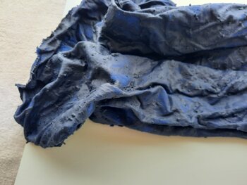 Vibrazioni positive in blu: ispirata da un meraviglioso periodo trascorso al lago con le persone care della mia vita, ho trasformato i miei pensieri e i meravigliosi ricordi di quel periodo felice in quest'opera d'arte astratta. Ho preparato io stessa la pittura, che contiene anche terra e cenere della mia terra natale. A seconda della luce e della tecnica utilizzata, le sfumature del blu si ripetono in tutta la loro varietà. A volte scure, intense… e opache, a volte fluide e luminose. Il panno di cotone e lino imbevuto di pittura rappresenta un movimento ondulatorio fluido. Immergetevi in quest'opera e lasciate che la vostra anima si rilassi. Ora, o in altre parole "ora", come la parola ricorre ripetutamente sull'opera. Nota: le dimensioni indicate si riferiscono al pannello MDF. Il panno utilizzato sporge di 4 cm dalla parte superiore e di 1 cm dalla parte inferiore del pannello MDF.