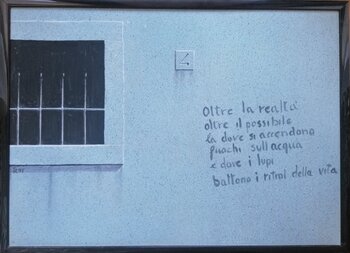 Ho dipinto una poesia scritta su un muro di strada. Ho apprezzato il testo evocativo, privo di qualsiasi riferimento al suo collocamento urbano. Una scritta con una suggestione poetica molto diversa delle scritte che spesso vandalizzano i monumenti. Documenta il mio interesse per l'antropologia attenta a tutte le tracce lasciate dagli uomini, in questo caso a Firenze.