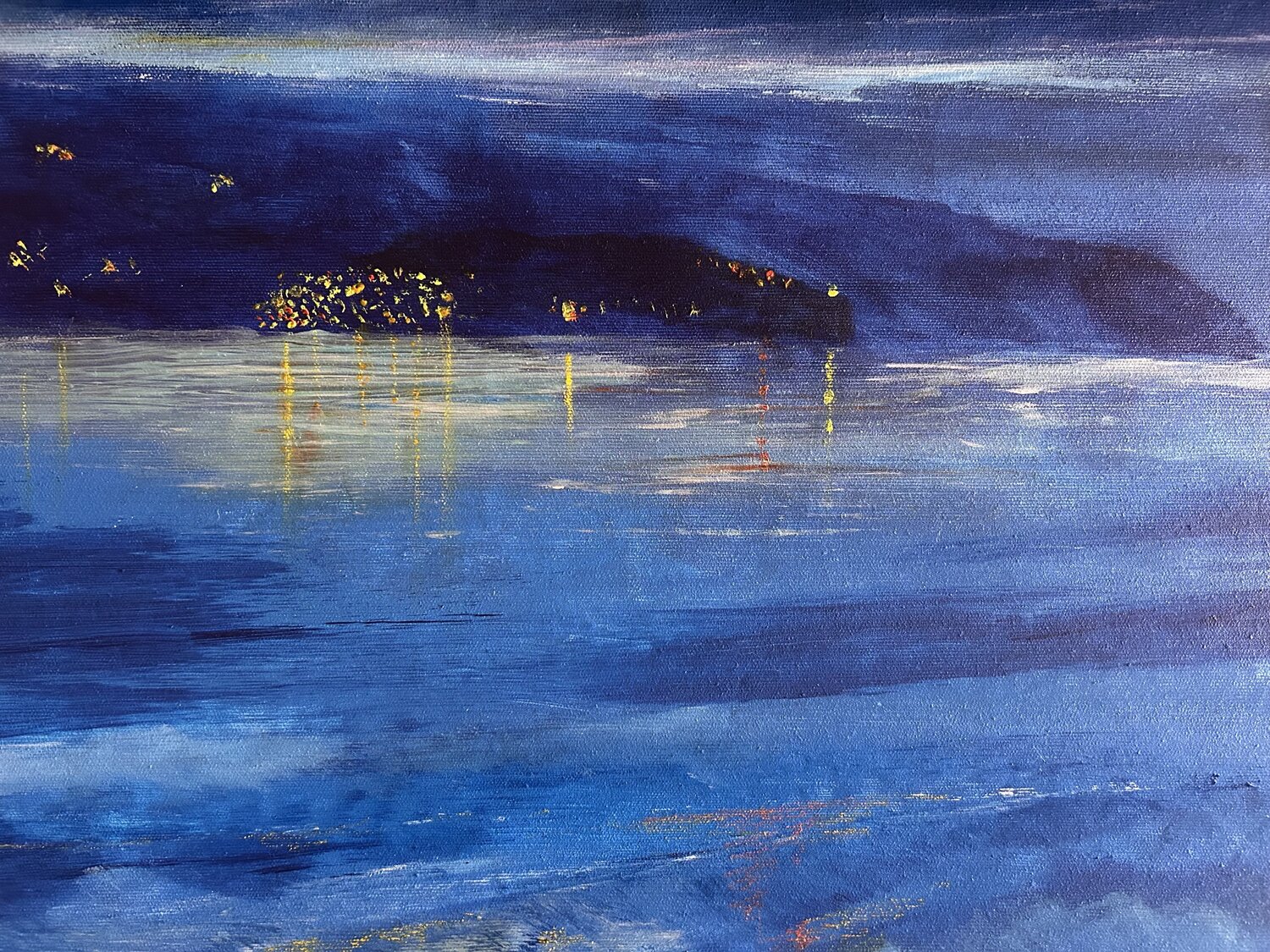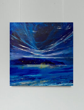 La notte misteriosa è la continuazione del mio lavoro "Faro di Agropoli" (venduto) nel Cilento. Luci della città, una città che sprofonda nel blu profondo. Ombre misteriose brillano sul mare. Scomparso nella notte, avvolto da una brezza leggera, davanti alle porte di Agropoli, la bellezza della notte...