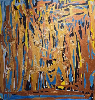 La sensazione di esistere con la musica, di muoversi insieme. La festa è in pieno svolgimento, i colori oro e rame evocano una beatitudine musicale, la sensazione di lasciarsi andare, di dimenticare tutto.