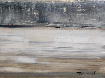 L'artista gioca con texture e sfumature,… creando una superficie quasi tattile che evoca paesaggi minimalisti e vaste distese desertiche. Ogni pennellata è deliberata, aggiungendo una dimensione di profondità e silenzio interiore all'opera. “Accalmie” è un invito all'introspezione, una pausa visiva dal tumulto della vita quotidiana.