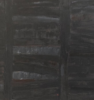 Le parole sono scomparse proprio come il colore per lasciare solo l'essenziale. Una lavagna per scrivere la propria storia. Qualche sottile apparizione di colore è sparsa qua e là, invitando lo spettatore a "scrutare" il dipinto, a scoprirlo e riscoprirlo costantemente. Il soggetto qui, i libri, è raffinato il più possibile per mantenere solo una costruzione grafica in monocromo dove il materiale e le sfumature lasceranno intuire i libri. Astrazione… di libri neri in olio su tela in una biblioteca.