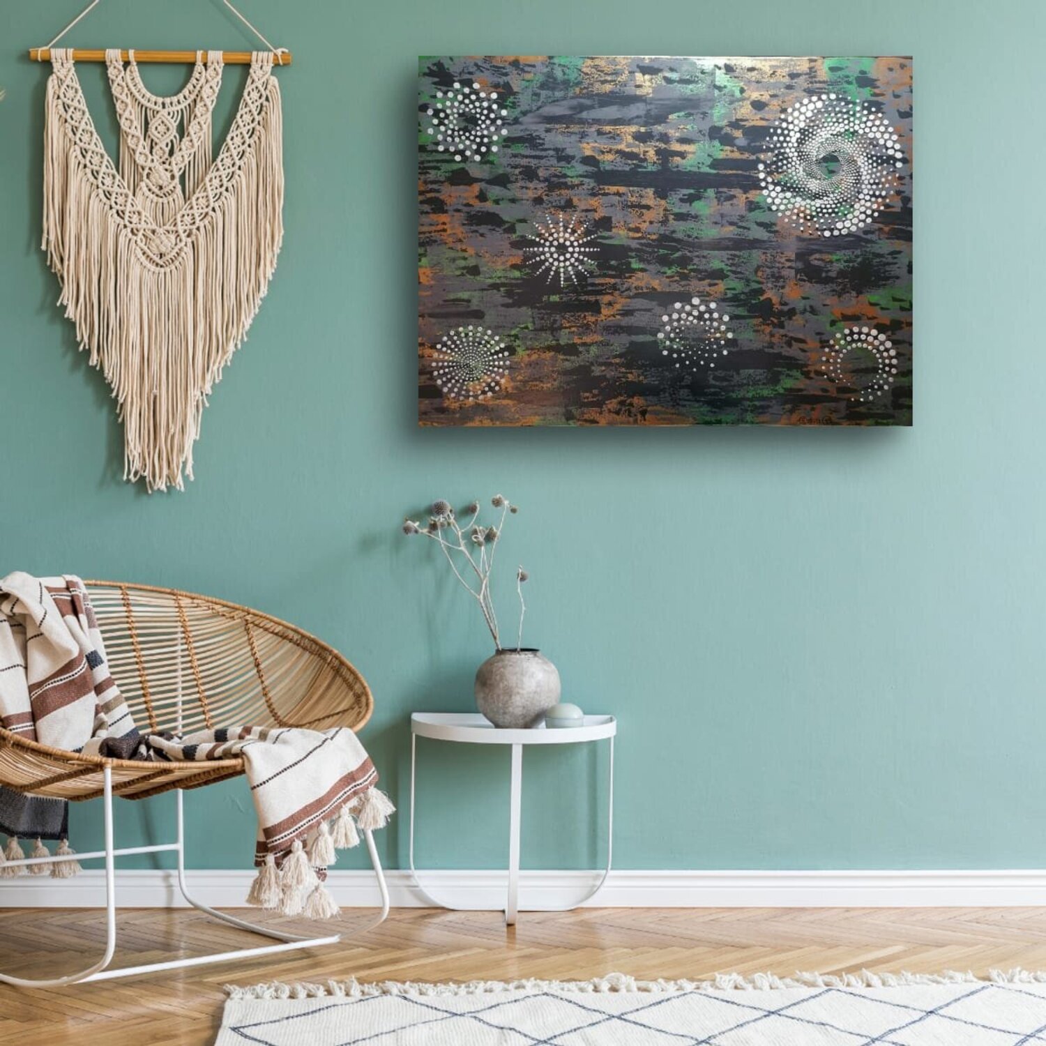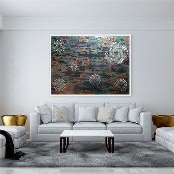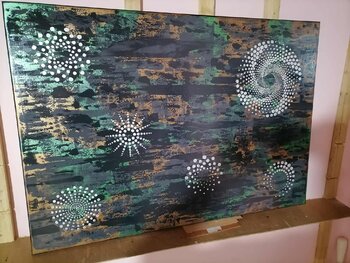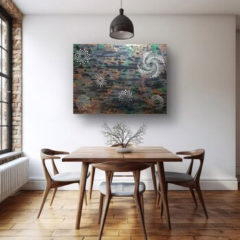 In quest'opera, ho riversato il mio entusiasmo per i misteri cosmici in motivi vorticosi e texture ricche. La brillantezza e i colori stratificati dell'acrilico evocano un'energia vibrante, come costellazioni che pulsano di vita. Voglio che questo dipinto riempia il vostro spazio di meraviglia e dell'emozionante sensazione di esplorare l'ignoto, ispirando curiosità e calma allo stesso tempo.