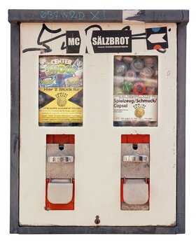 Questa foto è stata scattata in una città tedesca. Fotografo da anni questi piccoli distributori di gomme da masticare per bambini e sono sempre felice quando ne vedo uno da qualche parte in Germania. Tuttavia, sono una specie in via di estinzione; presto non ne resteranno molti. Stanno lentamente scomparendo dal paesaggio urbano, diventando vittime di vandalismo e di graffiti e adesivi insensati, ma a volte anche curiosi.