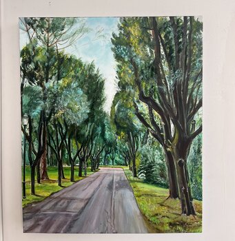In questo dipinto ho voluto catturare la serenità di una passeggiata immersa nel verde, tra alberi maestosi e un cielo limpido. Ho usato la vivacità dei colori acrilici e il calore dell'olio per dare profondità e vita ai colori, trasmettendo quel senso di pace che solo la natura sa offrire. Questa opera porterà in casa tua un'energia rilassante e rigenerante, come un respiro di aria pura.