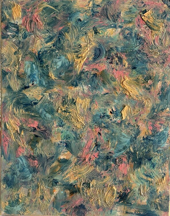 Nella creazione di quest'opera ho immerso i miei pennelli tra le sensazioni e i colori dell'energia terrena e naturale. Utilizzando acrilici e oli, ho dato vita ad una danza caotica di texture e sfumature che evoca emozioni profonde e riflessive. Questo dipinto, un tuffo nell'astratto e nell'espressionismo, è un invito a perdere i propri pensieri tra le correnti visive che solletica ogni sensibilità. Portandolo nella tua casa, sentirai un rinnovo… d'energia e un continuo invito alla contemplazione.