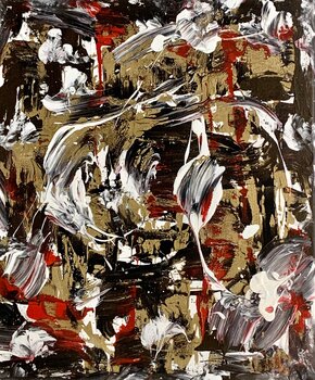 In questa tela, ho lasciato che l'acrilico si fondesse liberamente con la doratura, creando una danza astratta di colori e forme. È un'espressione dell'energia vitale che scorre attorno e dentro di noi, un richiamo alla bellezza nascosta nella caoticità della vita. Quest'opera trasmette passione e movimento, portando un soffio di ispirazione e calore in ogni ambiente.