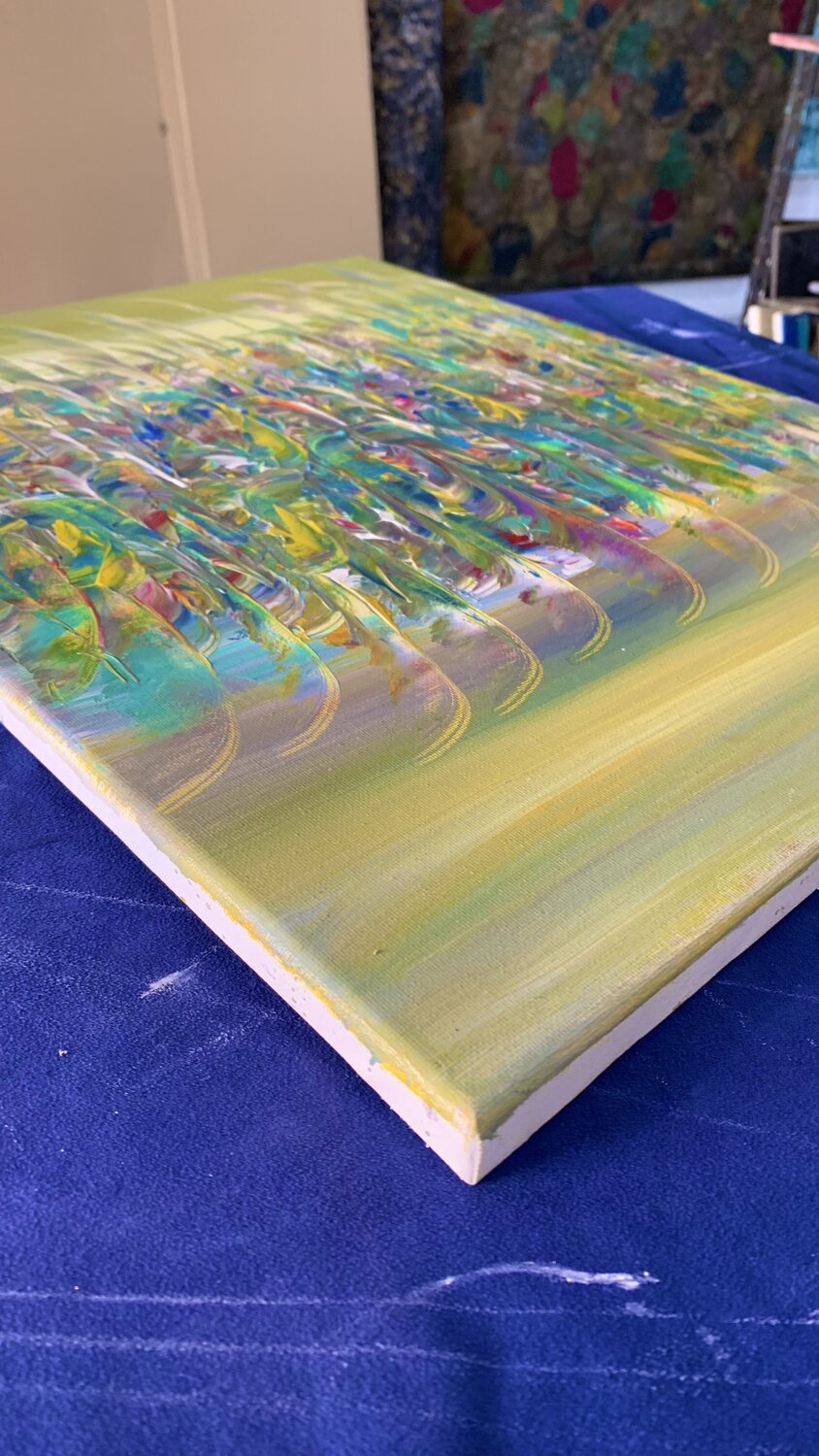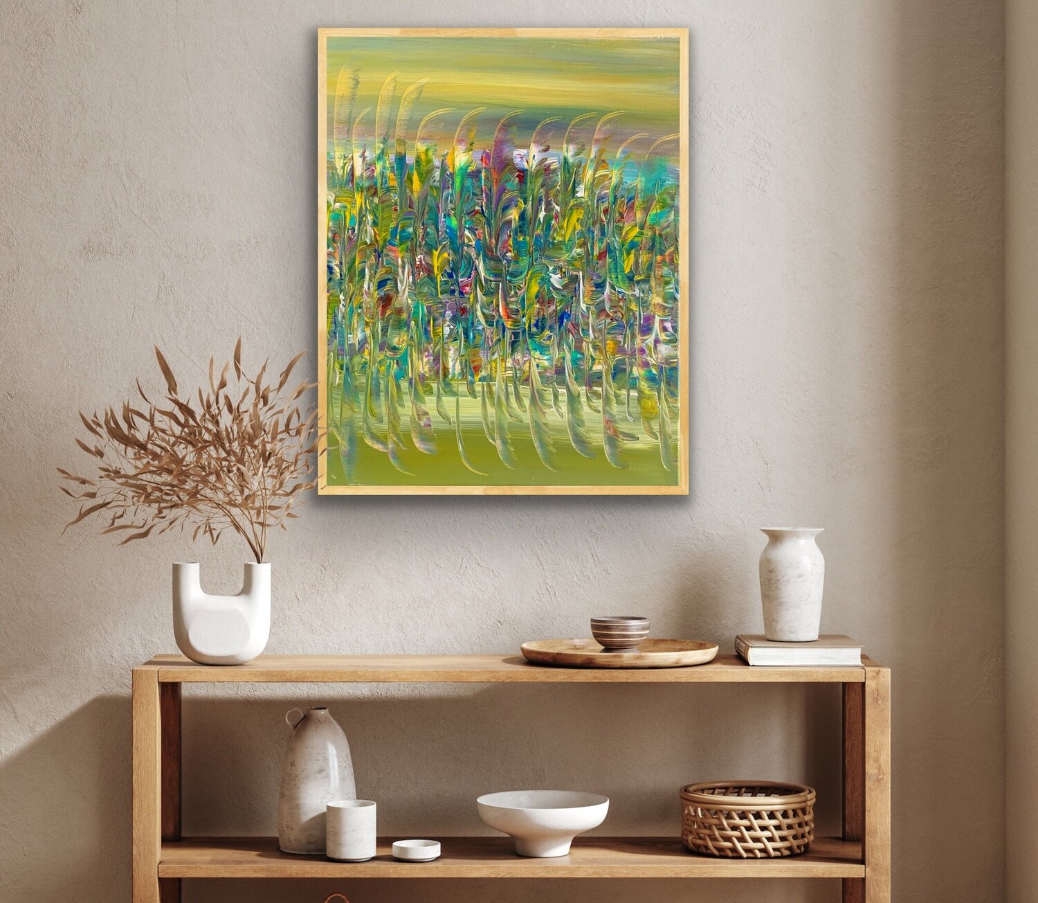 Nella realizzazione di quest'opera mi sono lasciato trasportare dalle emozioni del movimento e dalla forza vitale della natura. Ho utilizzato colori acrilici per catturare l'essenza effimera di un campo di grano sospinto dal vento, traducendo la danza di spighe oscillanti in pennellate astratte, vivaci e dinamiche. Ogni tratto è un invito a percepire la brezza e la gioia pura. Questo quadro porterà nell'abitazione un'ondata di energia e un tocco… di sublime bellezza naturale.