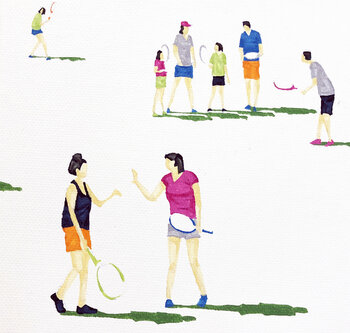 In questa serie di dipinti, Stephanie rimane fedele al suo interesse per l'osservazione delle attività umane nella vita della città metropolitana e al fascino per la silhouette delle figure umane. Ispirato allo sport popolare, Game On ha catturato l'energia dei tennisti sui campi.