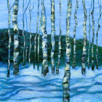 Quest'opera fa parte di una serie ispirata alle mie passeggiate quotidiane nei boschi intorno a Elsinore, dove vivo. Ho cercato di catturare la vibrante e fugace danza di luci e ombre e la mia meraviglia per come ogni cosa brilli e poi si trasformi di nuovo in un istante. Il mio lavoro espressivo si colloca nella tensione tra figurazione e astrazione.