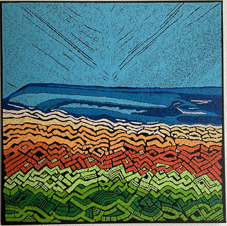 Nelle mie opere utilizzo colori acrilici brillanti per creare una scena piena di energia e vitalità che sembra uscita direttamente dal movimento Pop Art. Le linee strutturate e colorate evocano le onde ritmiche di un mare vivido che si estende sotto un cielo luminoso. Questo dipinto rende omaggio al magnifico dinamismo della natura e invita l'osservatore a perdersi nei diversi strati di emozioni e consistenze. È stato creato per aggiungere un'atmosfera… allegra ed energica a qualsiasi stanza in cui viene appeso.