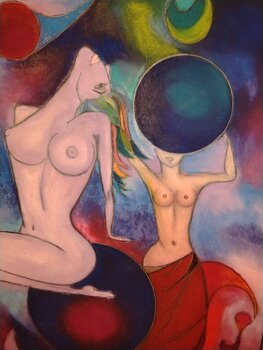 In quest'opera, combino con passione il dinamismo dell'Espressionismo con i colori vibranti della Pop Art per rappresentare il potere divino e la rinascita dell'energia femminile. Utilizzando acquerelli, pastelli a olio e gessetti, creo un'atmosfera vivace, quasi mistica, che irradia pura gioia e trasformazione. Questo dipinto porta un'energia intensa e rinvigorente in ogni stanza, piena di libertà e forza.
