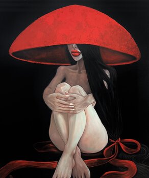 Nude lady in a red hat