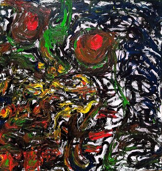 In quest'opera, ho riversato emozioni crude sulla tela, usando pennellate audaci e sinuose per catturare il caos e la vitalità dell'esperienza umana. I rossi e i verdi vibranti sullo sfondo scuro e intricato evocano un'energia impetuosa, senza filtri, primordiale e viva. Questo dipinto conferirà al vostro spazio una presenza intensa e dinamica, risvegliando le profondità della passione e della complessità che sono in ognuno di noi.