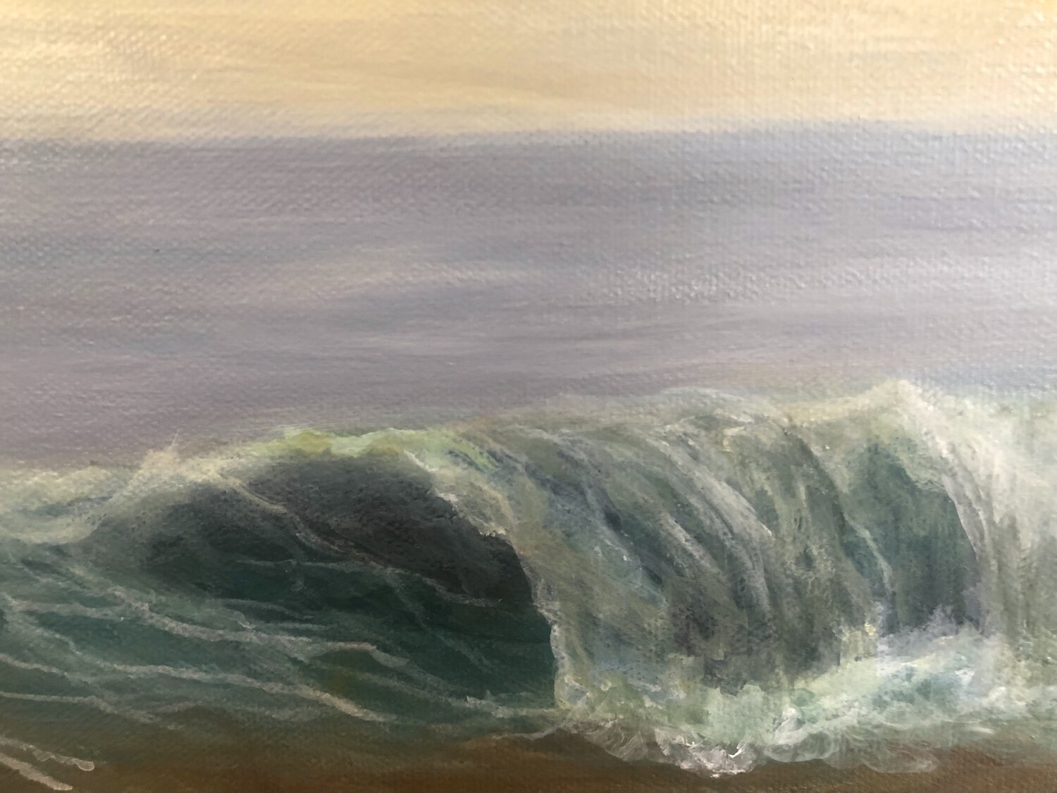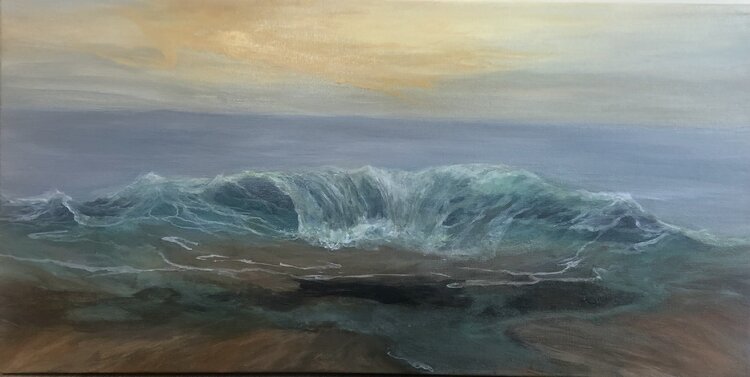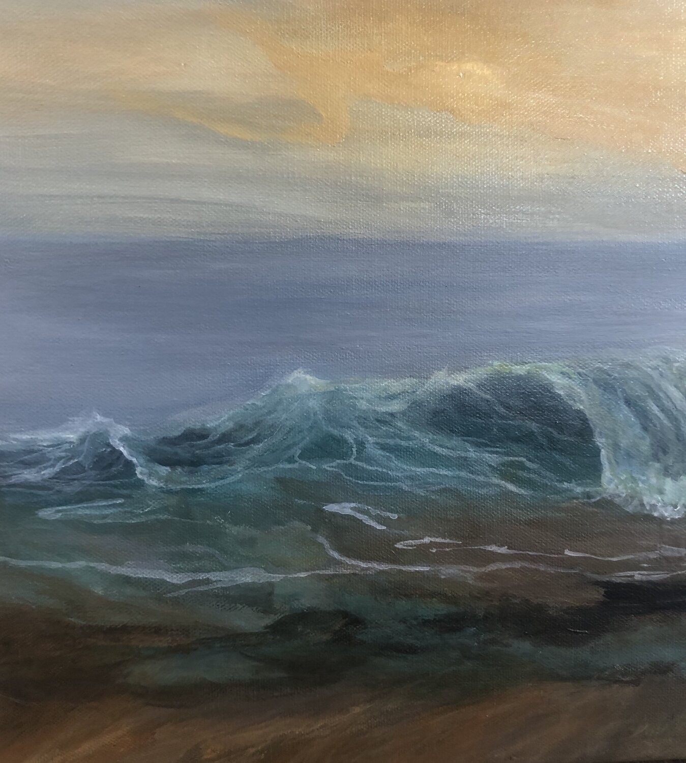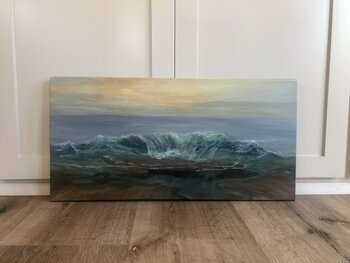 In questo ampio paesaggio marino, ho sfruttato la fluidità degli acrilici per trasmettere il movimento e la maestosità dell'oceano. Attraverso tratti impressionistici, ho cercato di catturare l'essenza della potenza del mare e la serenità dell'orizzonte al crepuscolo. Il gioco dinamico di luce e ombra incarna lo spirito selvaggio dell'acqua, invitando alla contemplazione e all'introspezione. Questo pezzo infonderà in ogni spazio l'energia tranquilla… ma potente di un tramonto costiero, in risonanza con la profondità delle emozioni dello spettatore.