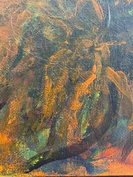 Realizzato in Portogallo nel tardo autunno del 2025, Remains of Sun è un dipinto astratto profondamente emotivo ispirato a un girasole ormai sbocciato da tempo, che cattura non una fine, ma una trasformazione. Blu profondi e verdi tenui creano un paesaggio silenzioso e contemplativo, mentre arance bruciate e gialli sbiaditi affiorano come l'ultimo calore del sole trattenuto nella memoria. Strati spessi e tattili e pennellate grezze e istintive conferiscono… all'opera una potente presenza fisica, preservando la tensione tra vita e scomparsa, calore e perdita. Questo dipinto parla di ciò che rimane dopo il culmine, della bellezza che permane cambiando forma, offrendo ai collezionisti un'opera sorprendente ed emotivamente risonante, intima, onesta e silenziosamente potente.