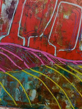 In questa vibrante espressione di emozione e natura, ho cercato di fondere l'astratto con un messaggio di resilienza e crescita. Lo sfondo rosso fuoco e gli alberi audaci e imponenti simboleggiano forza e resistenza. I verdi vorticosi della terra suggeriscono rinnovamento e vigore. Questo dipinto incarna la bellezza dei cicli naturali, incoraggiando la contemplazione e offrendo una dose quotidiana di ispirazione a qualsiasi casa con il suo spirito… vivace e pieno di speranza.