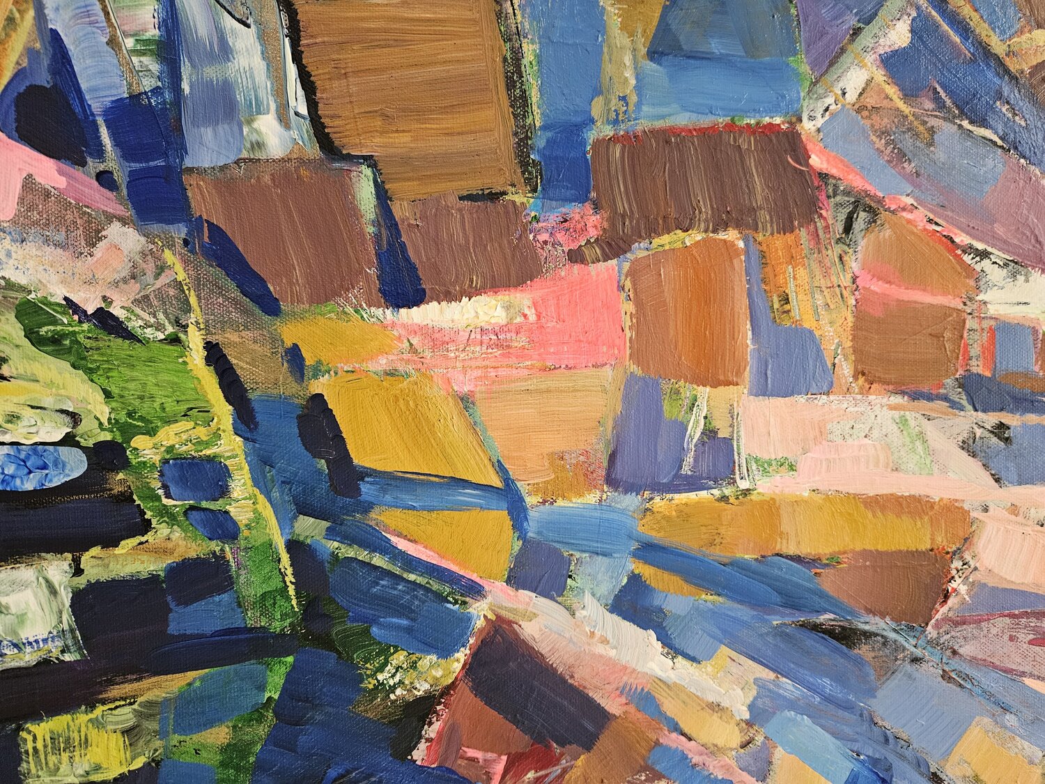 Lavoro con acrilico su tela, creando astrazioni stratificate in cui si accumula l'esperienza vissuta.