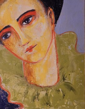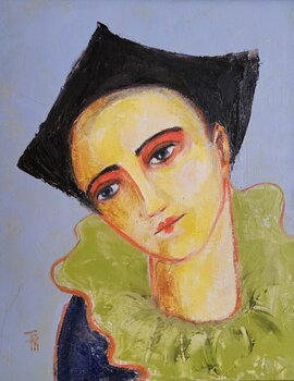 Tessa Thonett, pittrice affermata con un ricco background internazionale e una formazione formale alla Chelsea School of Art, lavora principalmente a olio, utilizzando sia pennelli che spatole. La sua tecnica vibrante fonde impasti materici, forme fluide e audaci rapporti cromatici, spesso stilizzati per enfatizzare l'emozione rispetto al realismo. I suoi ritratti immaginari di donne forti nella serie "Grace n' Grit" esplorano l'interazione dinamica tra vulnerabilità e forza, trasmettendo una profonda celebrazione della resilienza, dell'introspezione e del potere silenzioso insito nella femminilità.