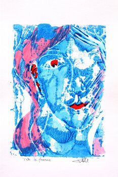 In quest'opera, ho esplorato la tensione tra vulnerabilità e forza attraverso audaci contrasti di blu e rosso. Utilizzando acrilico e rotocalco, ho sovrapposto texture per rivelare la complessità dello spirito umano. Quest'opera figurativa trasuda energia e introspezione, invitando lo spazio a sentirsi vivo, carico di emozioni e presenza riflessiva. È una celebrazione della resilienza e della… bellezza della donna interiore.