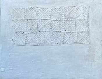 Un appassionato d'arte, acquisto effettuato nel mese di agosto 2025: "In questo spazio senza tempo penso al mare calmo.", Acrilico, Ricamo su Tela , 39,4x27,6 in